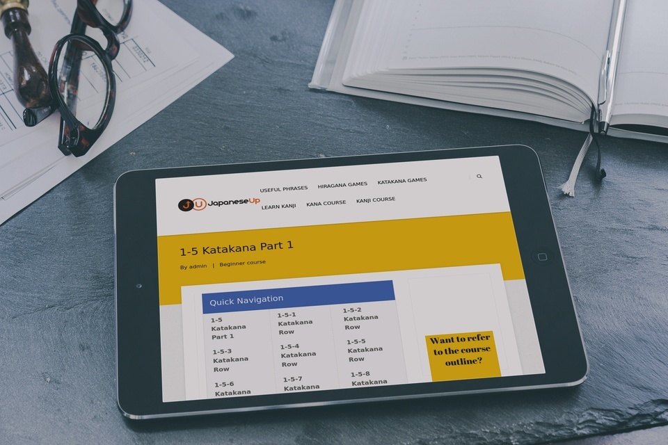 | 1-5 | Katakana Part 1 | See katakana written out. | Text & JapUp flash content | 15min |